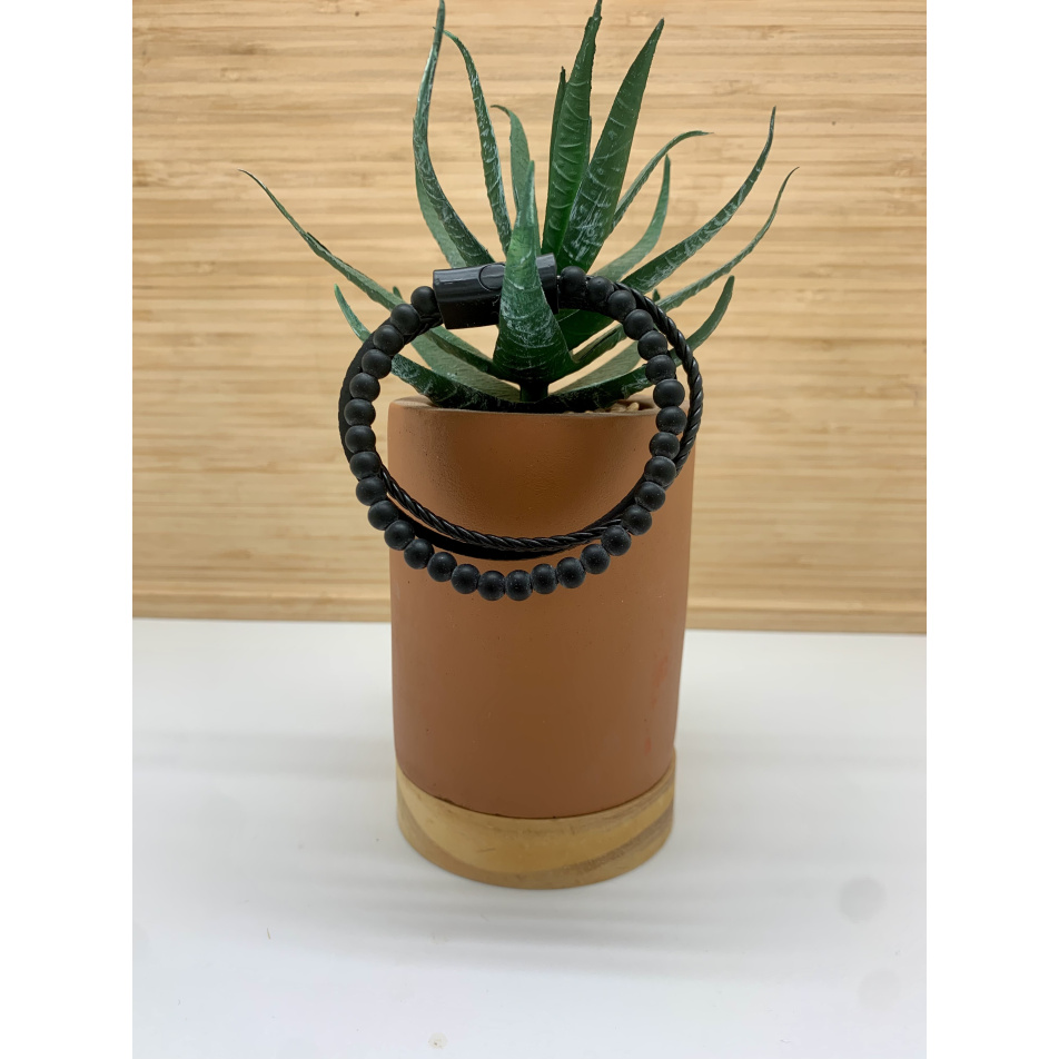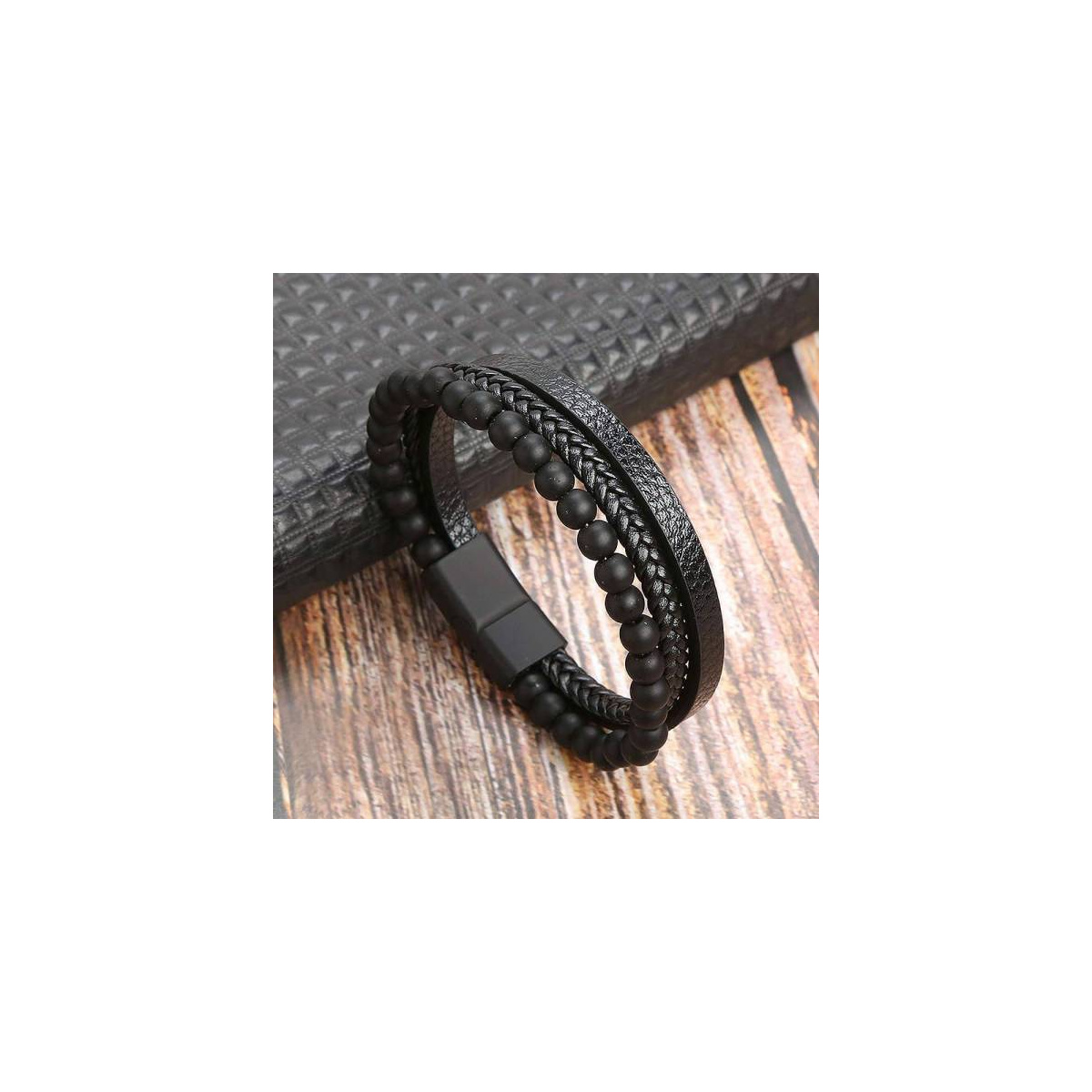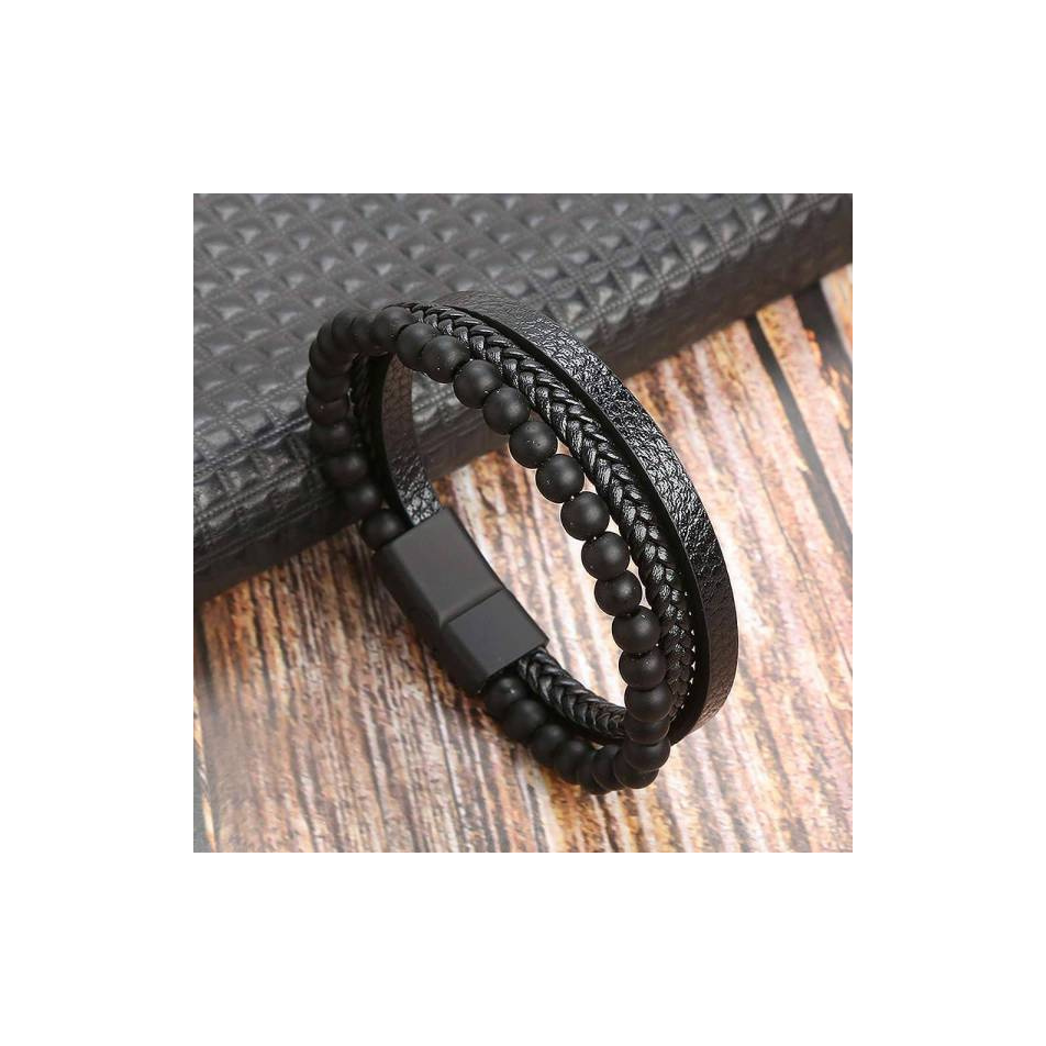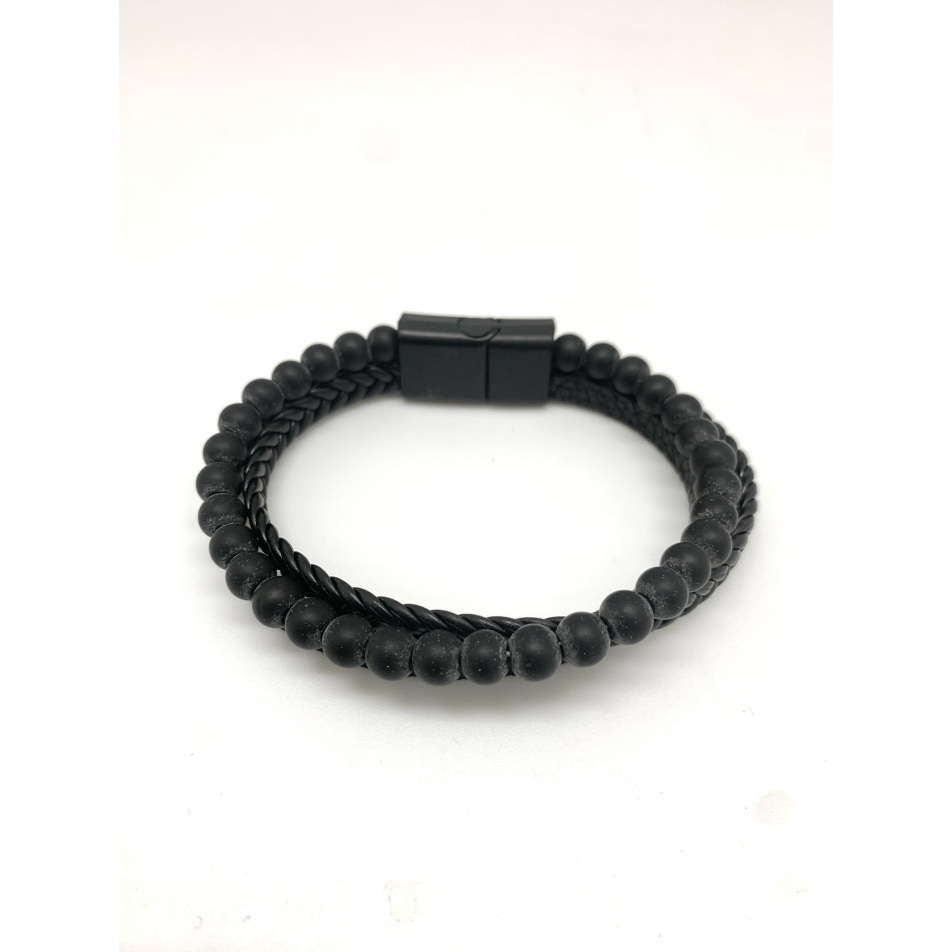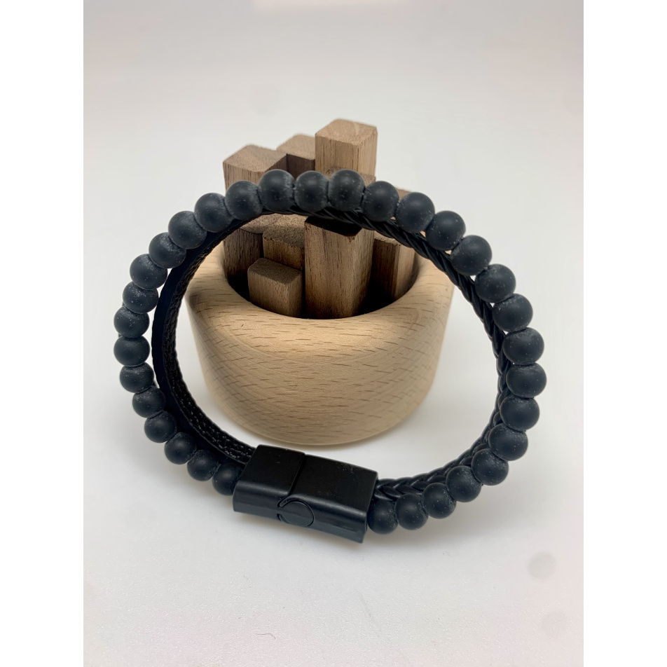 Bracelet cuir et pierre noire